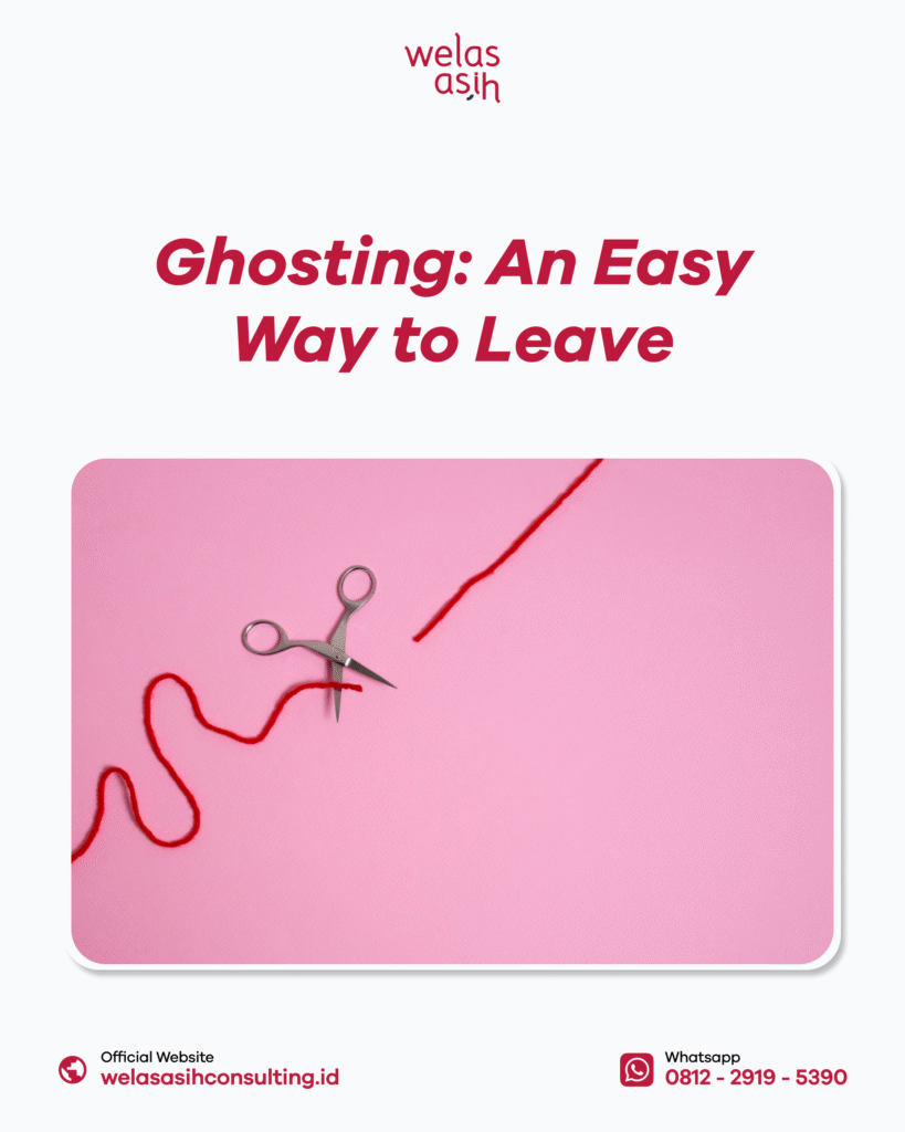 Dalam dinamika hubungan modern, ghosting sudah menjadi fenomena yang lazim tapi menyakitkan. Ghosting merupakan pemutusan hubungan secara sepihak dengan cara menghentikan seluruh komunikasi tanpa ada penjelasan sebelumnya. Banyak orang yang beranggapan ini “an easy way to leave” karena pelaku cenderung menghindari konflik, tidak mau berkonfrontasi dengan pasangannya. Mudah memang bagi si pelaku, tapi berat dan destruktif secara psikologis bagi pihak yang ditinggalkan.