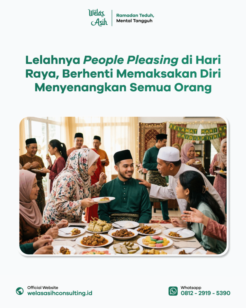Hari raya idul fitri sering menjadi momen untuk berkumpul dengan banyak keluarga, kerabat dan teman. Momen seperti ini sering menunjukkan masih banyak fenomena people pleasing. Mulai dari memaksakan diri menghadiri undangan silaturahmi sampai merasa harus menjawab semua pertanyaan dengan senyuman, banyak individu yang merasa energinya terkuras habis. Sebelum memutuskan pergi ke psikolog semarang, fenomena ini harus kita pahami lebih dalam dan sadari tak cuma lelah biasa saja, tapi beban kognitif nyata yang harus kita regulasi bersama.